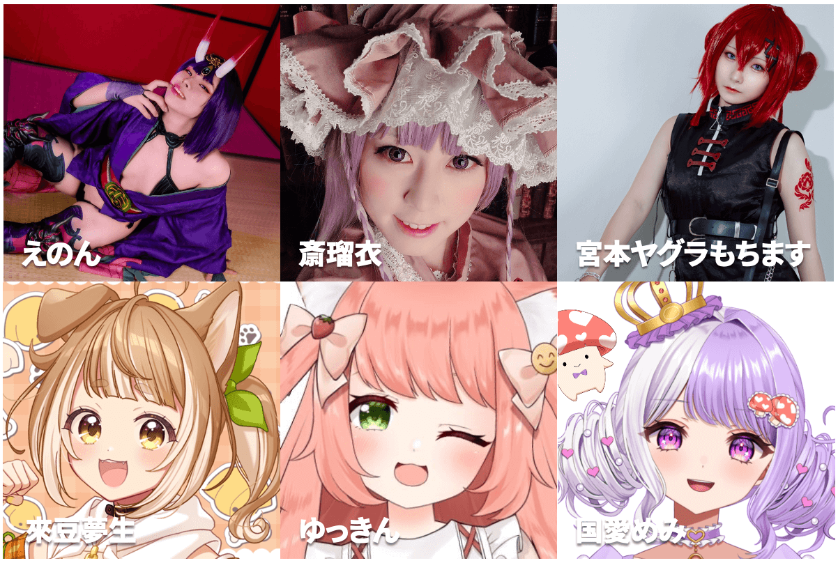 斎瑠衣/えのん/宮本ヤグラもちます/ゆっきん/來豆夢生/国愛めみ